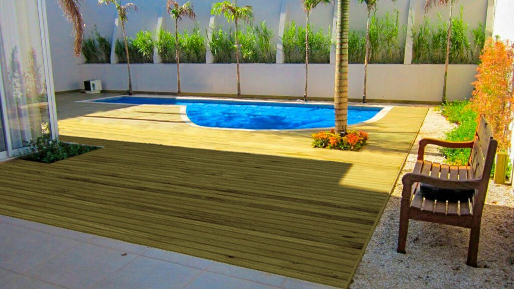 Para quem procura uma opção acessível sem comprometer a durabilidade e resistência, o deck de Pinus tratado é a melhor opção. Especialmente selecionadas e sem nós, é uma opção que combina elegância e sustentabilidade. Passam por um rigoroso e eficaz tratamento industrial em auto clave, que imunizam 100% a madeira contra apodrecimento e cupim por muitos anos, oferece durabilidade suficiente para enfrentar quaisquer condições climáticas adversas. Com veios longos e tons suaves, proporciona um visual convidativo ao seu espaço exterior.