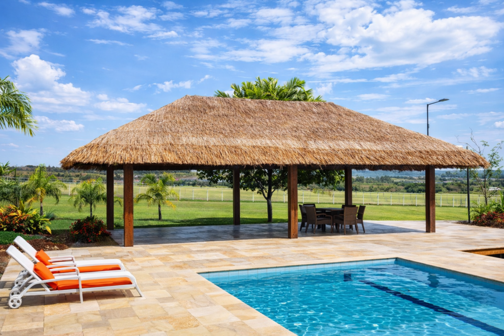 Elevamos o conceito de hospitalidade ao próximo nível, apresentando nossos exclusivos projetos de quiosque com cobertura de sapê, uma fusão perfeita entre luxo, elegância e sustentabilidade com a natureza. Seja para clubes, hotéis e resorts, nossos quiosques são imbuídos da beleza única do sapê, e proporcionam áreas de convívio e lazer extraordinários, adaptáveis a diferentes estilos e necessidades, os quiosques se tornam essenciais em áreas de piscinas, churrasqueiras, jardins exuberantes ou espaços para eventos.
